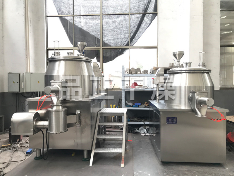 粉体物料与粘合剂在圆筒形容器中由底部混合浆充分混合成湿润软材,然后由侧置的高速粉碎桨切割成均匀的湿颗粒。