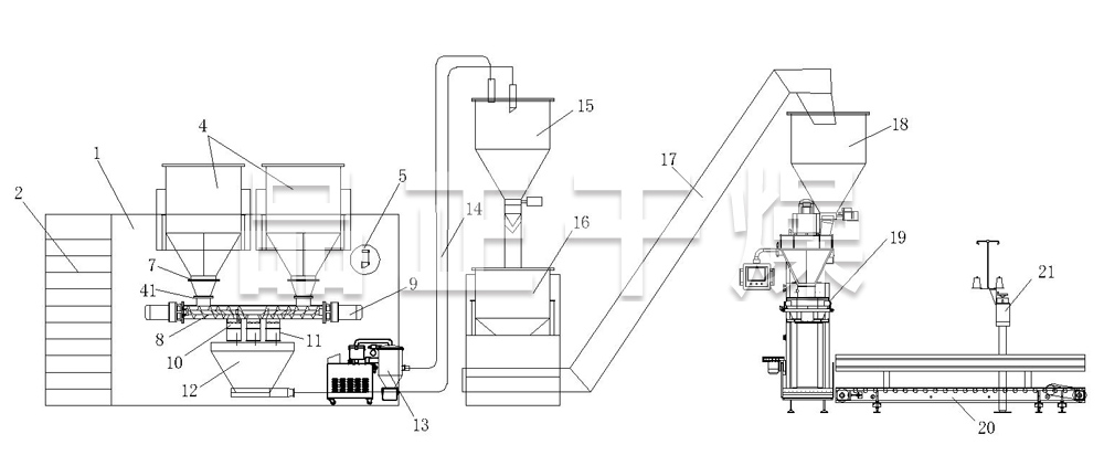 5)混合部分:按物料混合及客户要求配置相关混合设备;