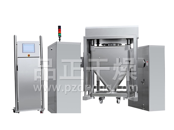 The revolving body (mixing hopper) forms an included angle of 30 ° with the revolving axis. The materials in the mixing hopper turn outward with the revolving body, and move tangentially along the bucket wall to produce strong overturning and high-speed tangential movement, so as to achieve good mixing effect. The PLC is fully automatic controlled, and the infrared safety device and the discharge disc valve of the anti-misoperation device are installed to ensure production safety. Materials can pass through different process sections in the same container without frequent material transfer, feeding and other procedures. Effectively control dust and cross pollution, reduce material loss, control material layering, optimize production process, and fully meet the GMP requirements of drug production.